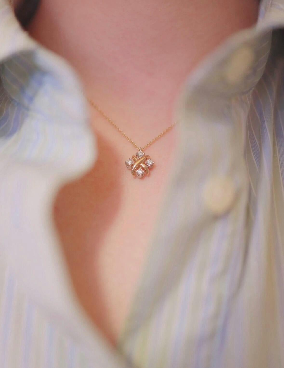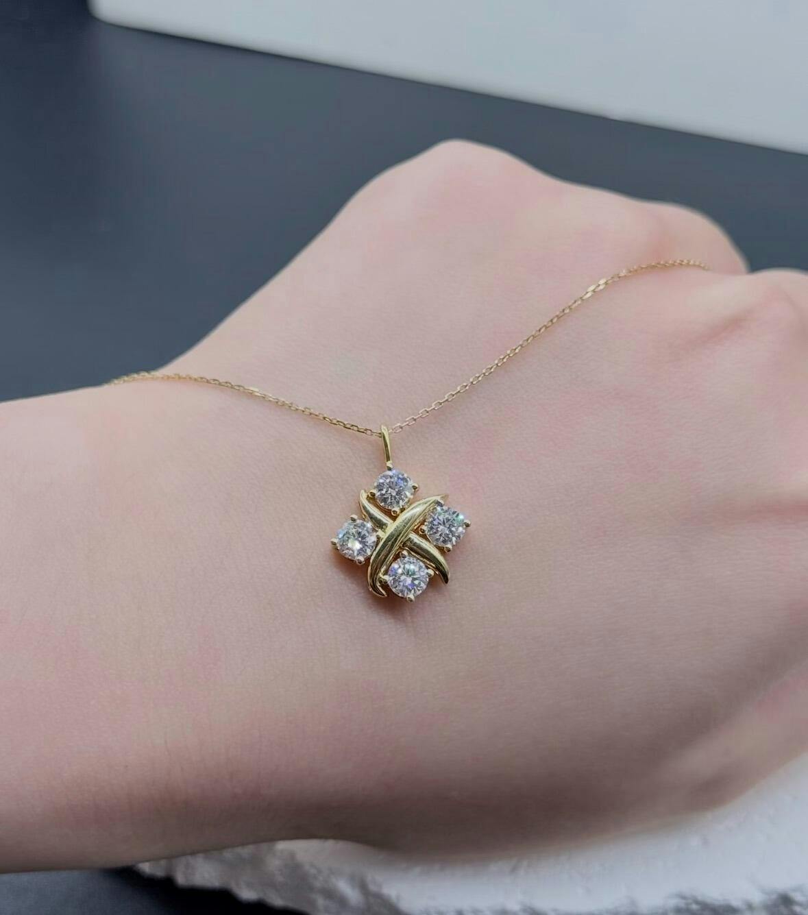 - Intertwined cross-knot pendant design set with round-cut artificial diamonds for a balanced, elegant look