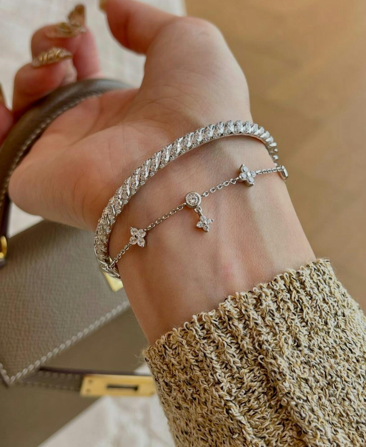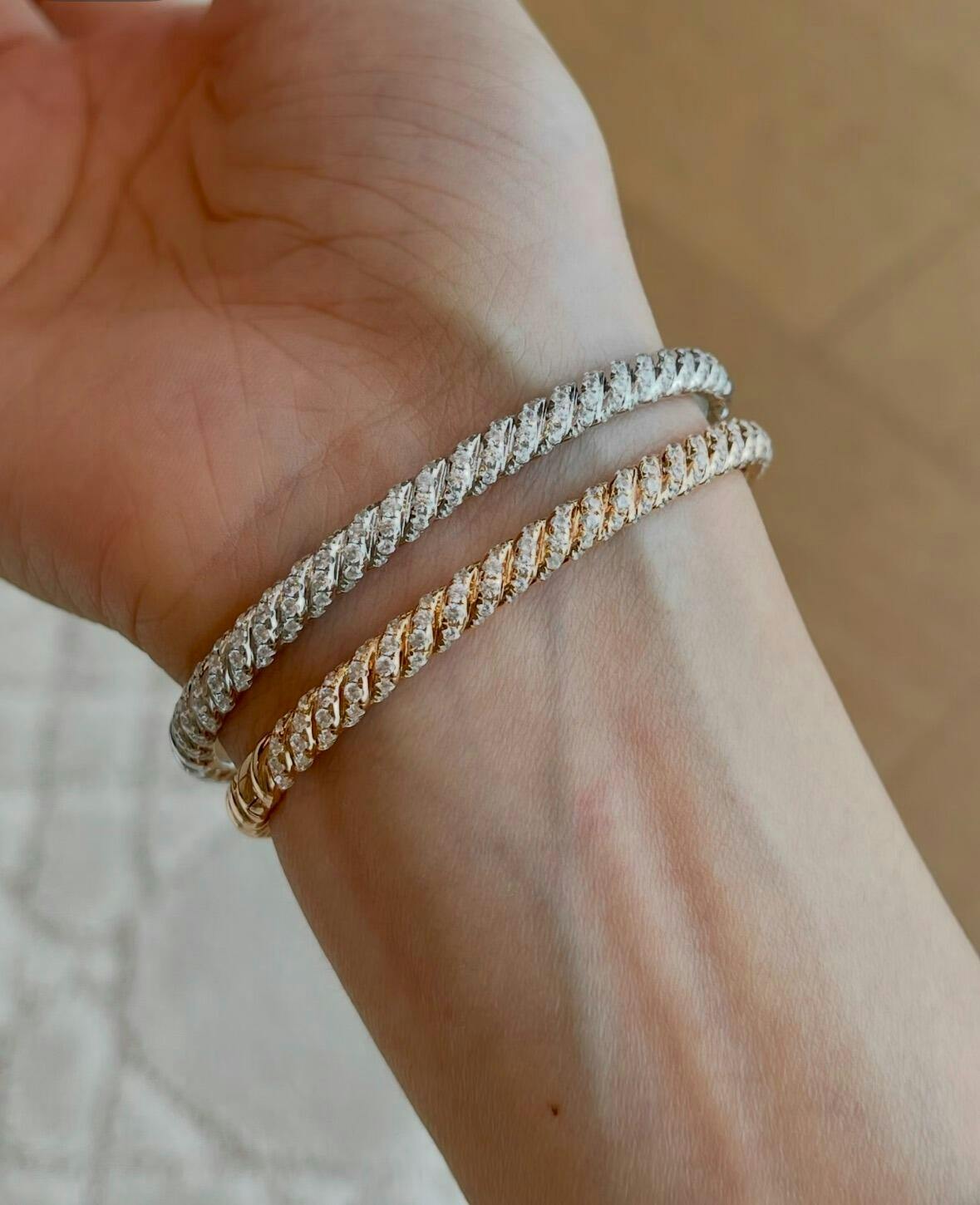 - Artificial diamonds precisely set along the entire bracelet for uniform sparkle