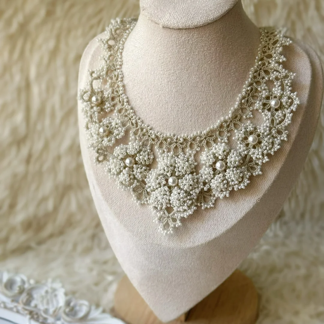 Each Frivolité piece is handwoven with care, blending airy French romance with modern refinement—light to wear, yet rich in emotion. Designed for everyday grace and quiet beauty.